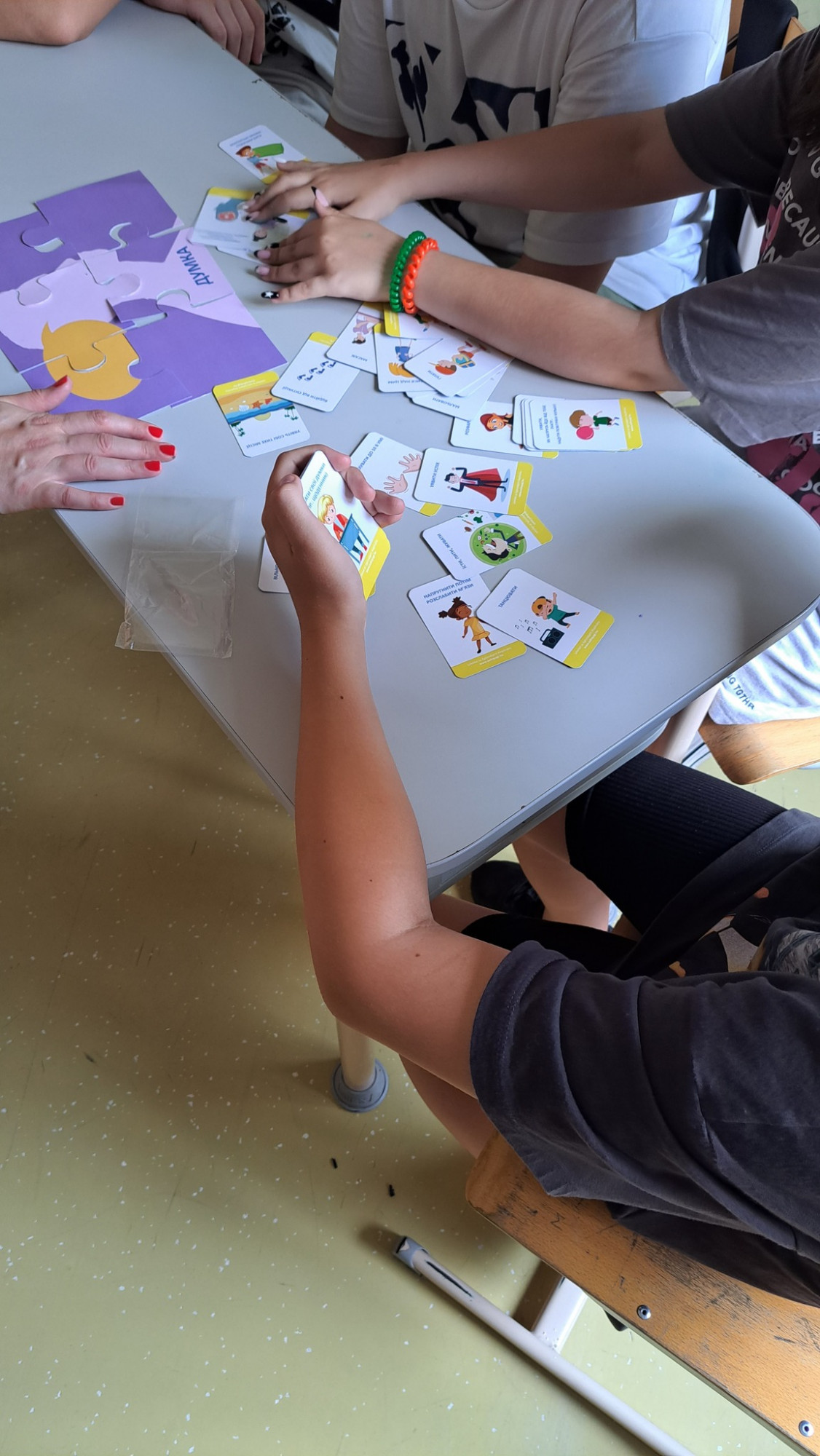 A nagyobbak érdeklődését is felkeltette a téma. Állandó szereplőnk, Feszültke papírra rajzolt sziluettje hamar megtelt stressztünetekkel, és okos gondolatokat osztottak meg egymással akkor is, amikor arról ötleteltünk, mit lehet tenni ezeknek a tüneteknek a kezelésére.