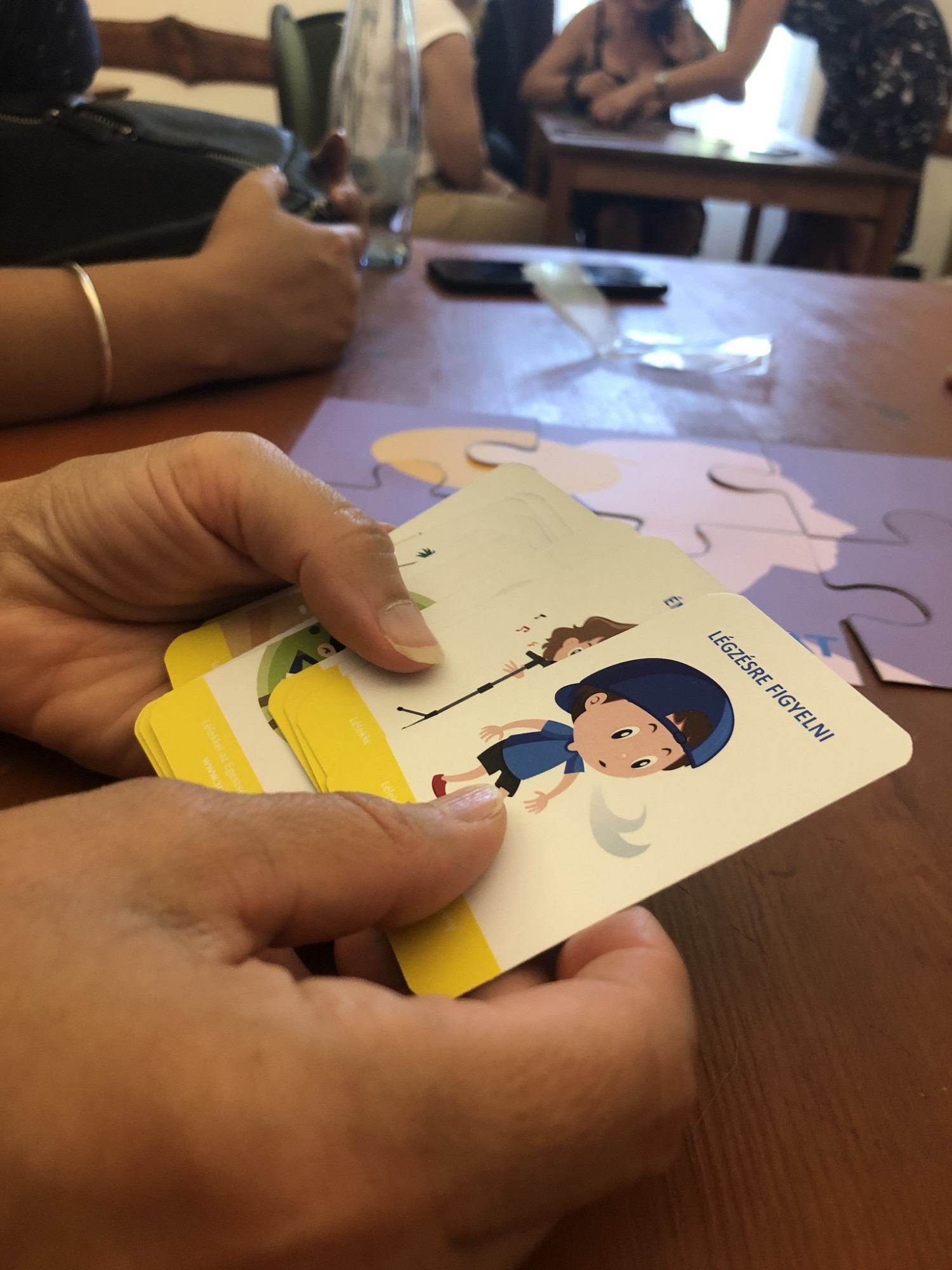 Nagyon színes csapattal dolgozhattunk együtt, akik között volt pedagógus, iskolapszichológus, iskolai szociális segítő is. Volt a csoportban olyan, aki már már látott Sulinyugi foglalkozást, vagy saját élményként szerzett tapasztalatot a feszültségoldó technikákról, így igazán gazdag, sok szempontot behozó szakmai beszélgetések folytak a képzés során.